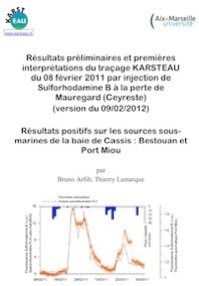 Ci-dessous des liens sur les traçages réalisés par Spélé-H2O en partenariat avec l’université Aix-Marseille-Cerege, le CDS 83 (Comité Départemental de Spéléologie du Var), l’agence de l’eau, le BRGM, le CDSC 13, la Someca, ville de Toulon, ville de Six-Fours-les-Plages et Véolia-eau.