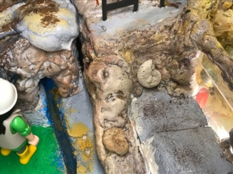 Scène 1 : fossiles d'ammonites dans la roche calcaire