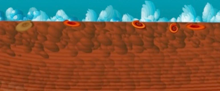Scène 10 : les organismes microscopiques apportent également des carbonates au sédiment.
