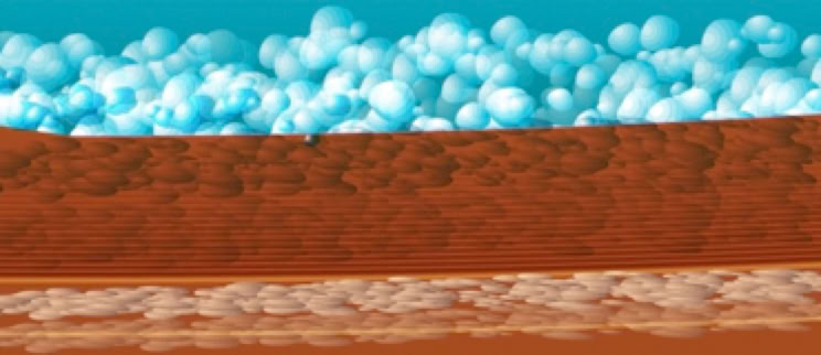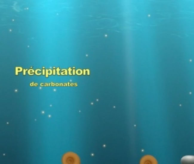 Scène 8 : précipitations des Ions calciums et bicarbonates en fine particule de calcaire.