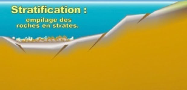 Petit à petit, les couches de roches s'accumulent. On appelle strate une couche de roche qui s'est déposée : c'est la stratification.