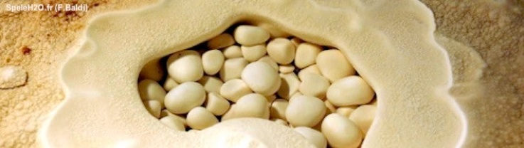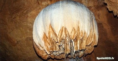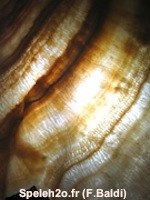 Au contact de l’air, les gouttes d’eau déposent des anneaux de calcaire qu'on appelle calcite ou aragonite.
