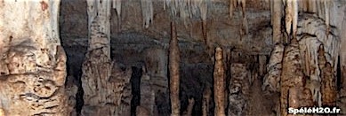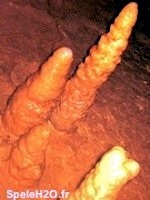 Quand les gouttes tombent sur le sol, elles s"évaporent tout en déposant un peu de calcite. Au fur et mesure, s’édifient des concrétions plus massives que les stalactites :