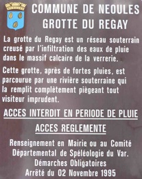 Elle se situe sur la commune de Néoules et Durant les périodes pluvieuses, elle s'ennoie totalement pour s'écouler assez rapidement dans un ruisseau. L’étude porte sur le transfert des masses d’eau souterraine via le Siphon 1, qui se trouve à 560 m de l’entrée de la grotte.