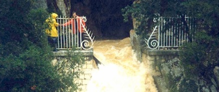 Tel un torrent, à travers les grilles du portail, l’eau vient alimenter ce fleuve colérique. Les mesures effectuées au déversoir du barrage ont permis de constater des crues allant jusqu’à 60 voire 80 m3/s.