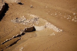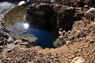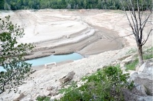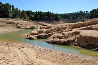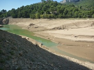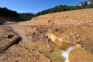 Niveau d’eau du barrage le 02/10/12 : 100,73 m NGF. Il est 12h45, les 2 sources ne coulent plus. Il n’y a pratiquement plus d’eau dans le Piézo des Platanes, et le niveau de la Grande Foux baisse à vue d’oeil.
