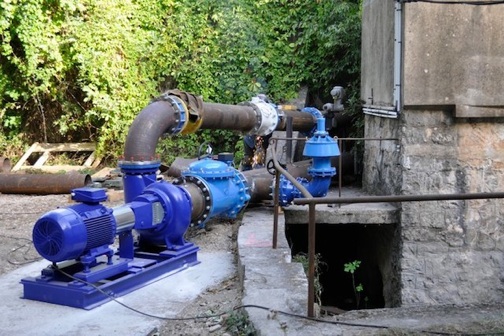 Le raccordement s’est fait sur la conduite DN 400 d’alimentation de l’usine. Un débitmètre permettra de connaître les débits et volumes pompés.
