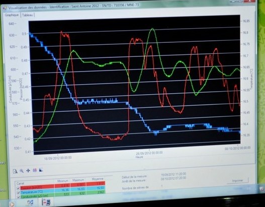 Le PC de Véolia, le niveau d’eau dans la retenue et dans la source de la Grande Foux