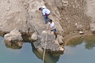 Préparatifs avant les essais de pompage - Inspection du puits de la Loude (11 mai 2012)