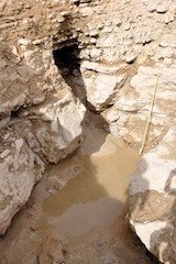Le 27 septembre, à 23h30, suite à l’essai de pompage, la source du Figuier est a son niveau minimum. Nous descendons un puits de 8 m. Nous observons quelques petites laisse d’eau par ci par là.