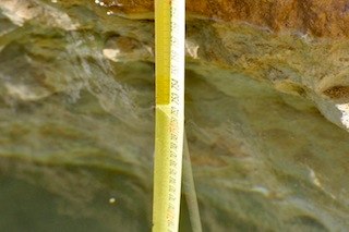 Elle trempe légèrement dans l’eau et nous permettra de surveiller la remontée du niveau d’eau.