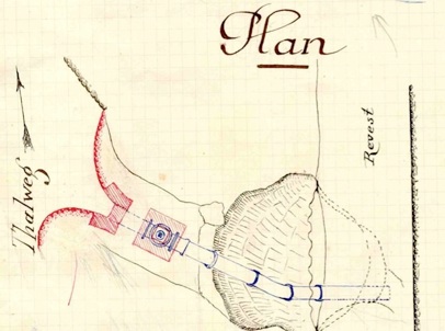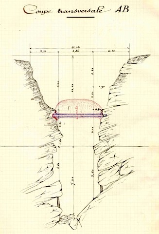 – la cote théorique du fond du tunnel (91m NGF) et sa hauteur (2m) coïncident avec la cote relevée au fond (93m NGF).