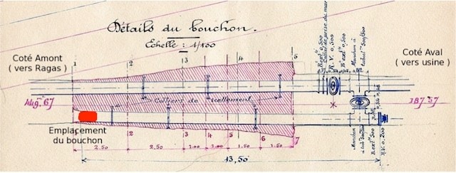 Ce bouchon permettra de pomper dans la conduite du tunnel seulement l'eau du Ragas, et pas celle de la retenue. La communication entre cette conduite de drainage et la conduite principale, seulement supposée à cette date, a ensuite été confirmée lors du 1er jour de l'essai de pompage.