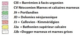 Légende de la coupe géologique entre l’aven des Polonais et la Source de la Rouvière