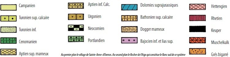 Légende de la coupe géologique du sud Sainte Baume à Sanary