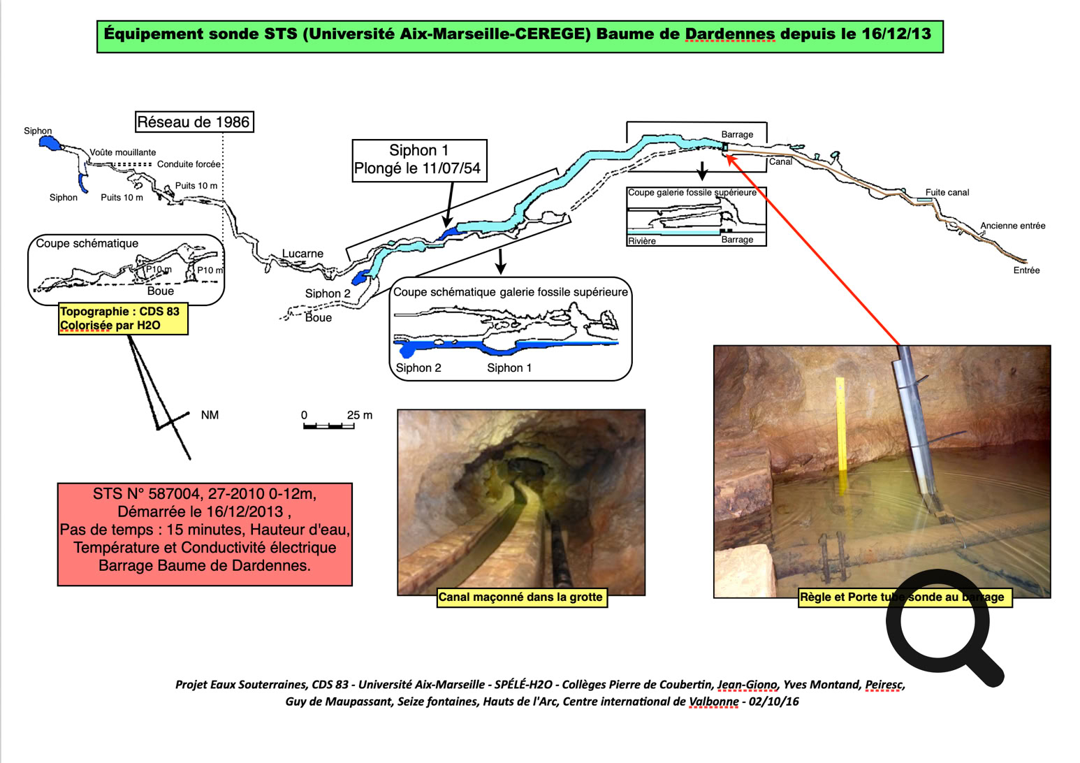La baume de Dardennes est équipée d’une sonde STS (propriété de l’université Aix-Marseille-Cerege) depuis le 5 septembre 2012.