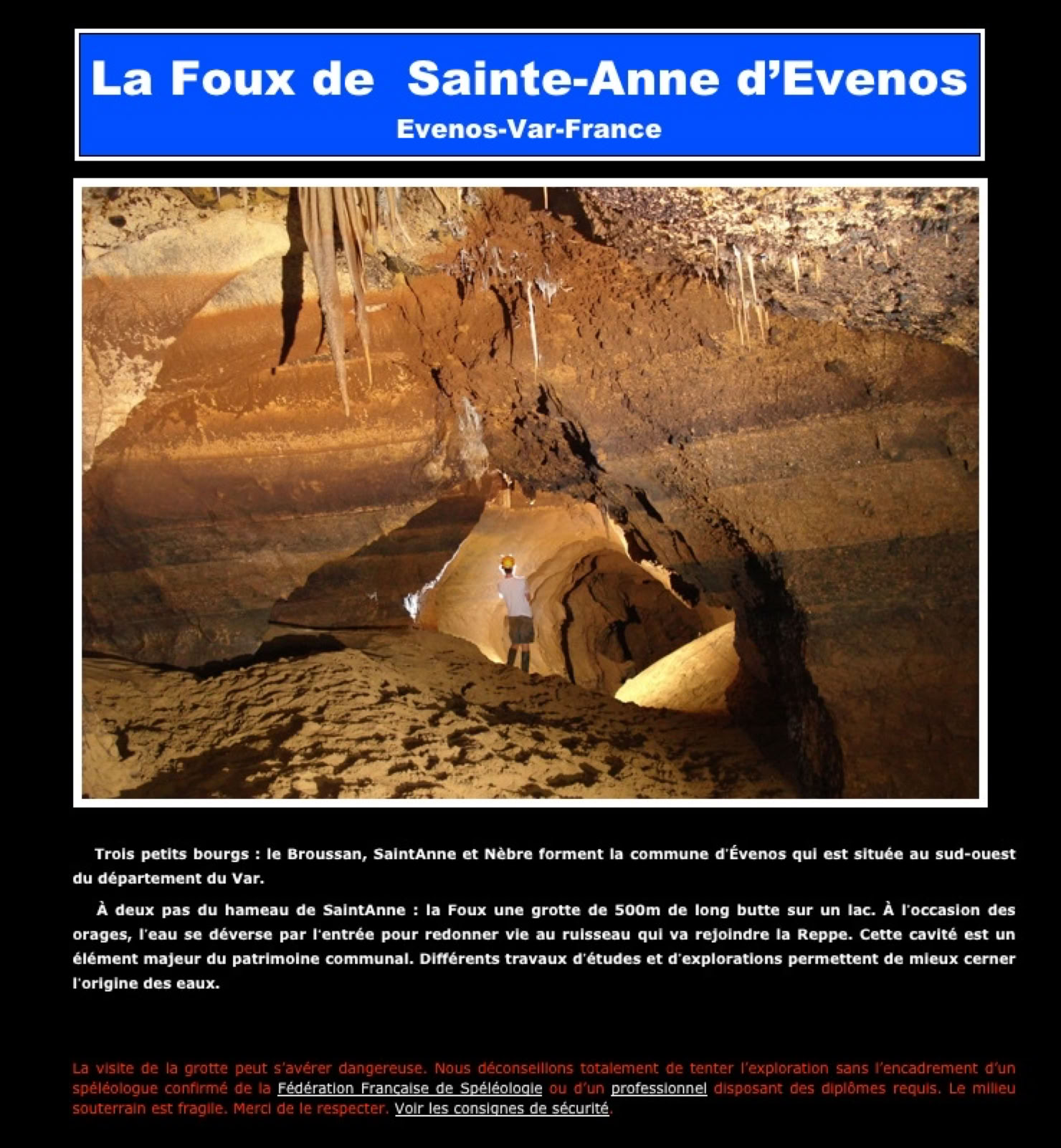 Cliquez sur la photo pour vous connectez sur le site de la Foux de Sainte Anne d’Evenos