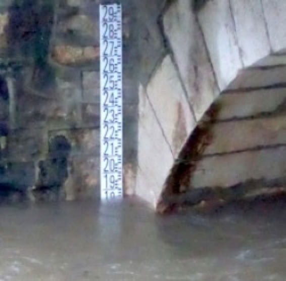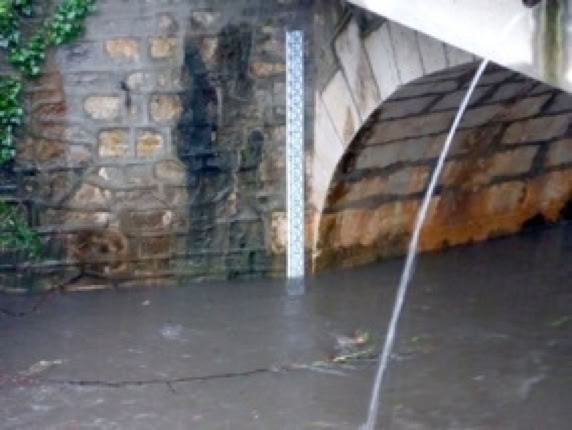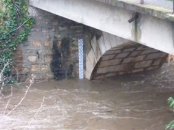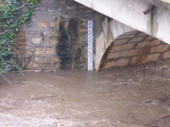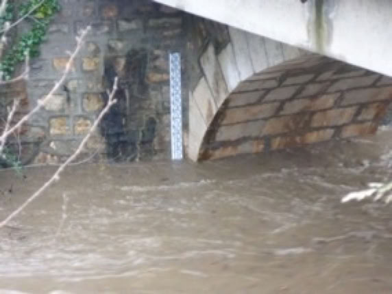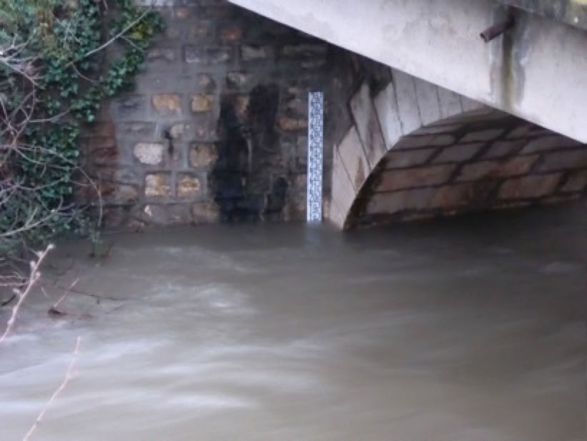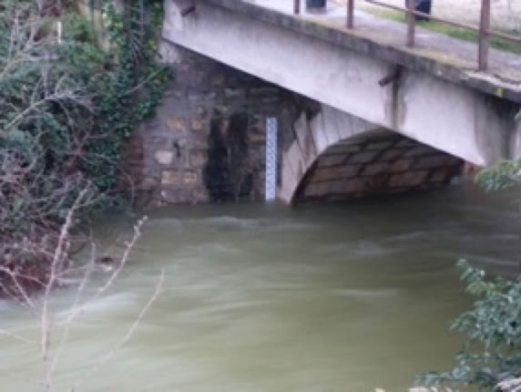 En hautes eaux, la lecture se fera depuis le haut du pont, la section transversale est stable et régulière (culée du pont), donc en principe la relation hauteur-débit devrait être biunivoque et stable dans le temps.