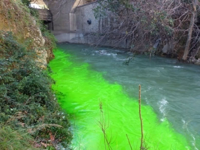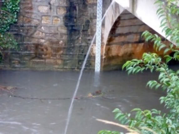 -suite à cette pluie, nous observons une crue dite «urbaine» dans le Las, le niveau d’eau monte rapidement, il passe de 76 cm à 103 cm en 1 heure (8h50-9h50), nous effectuons 1 jaugeage à la fluorescéine. La mesure de la conductivité (256 μS/cm) montre que l’eau du Las est tout simplement l’eau de ruissellement provenant de la pluie tombée en cette matinée.