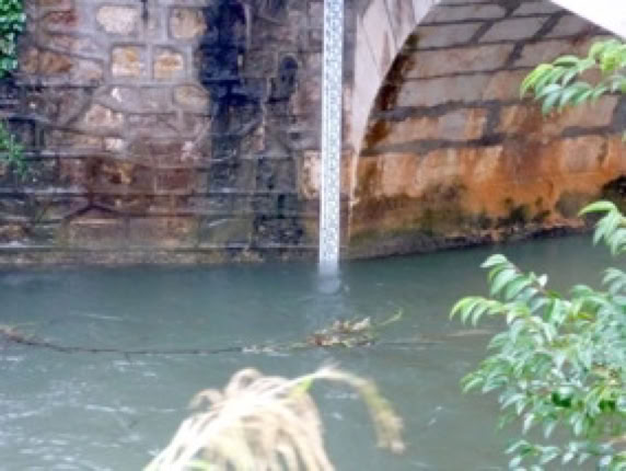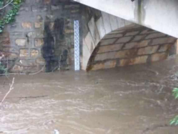 -nous arrivons sur site vers 8h00 (station de mesure du pont de Lagoubran) sous une grosse pluie, la hauteur d’eau sur l’échelle Ifremer est égale à 76 cm.