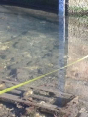Nous avons effectué 15 mesures de débit pour un niveau d’eau compris entre 35 cm et 37,5 cm. Nous avons utilisé différentes méthodes de jaugeage, jaugeage au sel, jaugeage à la fluorescéine et jaugeage au courantomètre.