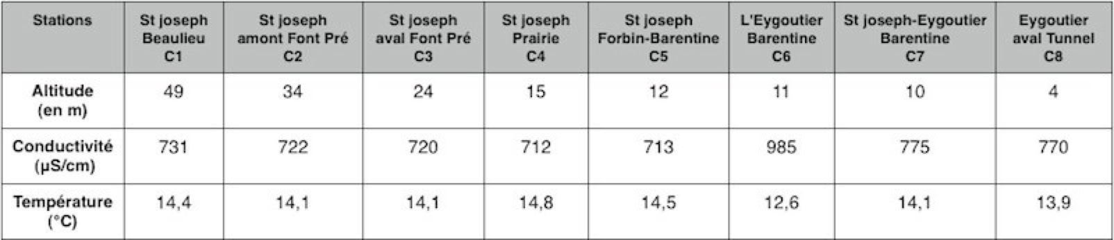 Les résultats montrent que la conductivité électrique n'évolue guère le long de cette petite rivière.