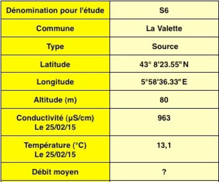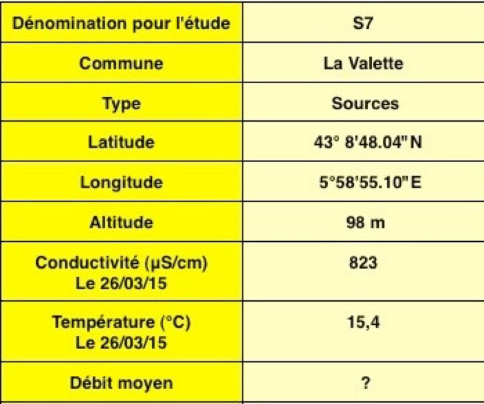 Nous avons donc suivis quelques sources se trouvant sur la commune de la Valette du Var, ainsi que le cours d’eau Saint Joseph, ci dessous leurs fiches d'identités