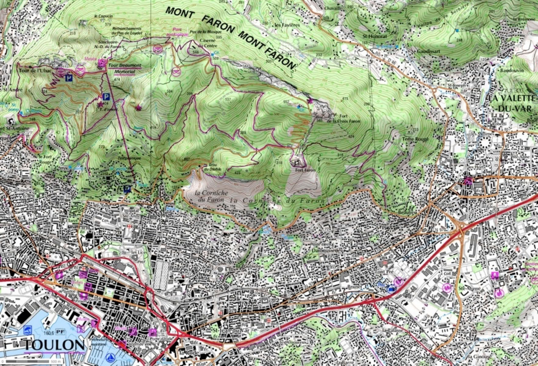Les principaux exutoires sont situés au pied du Coudon dans le quartier de Baudouvin avec comme source principale, la Maïre des eaux (qui porte aussi le nom de la Foux) située à une altitude de 135 m, son débit variant de 5 à 350 l/s. Cette source aménagée dès le XVIIème siècle est utilisée aujourd'hui pour alimenter les fontaines de la ville.