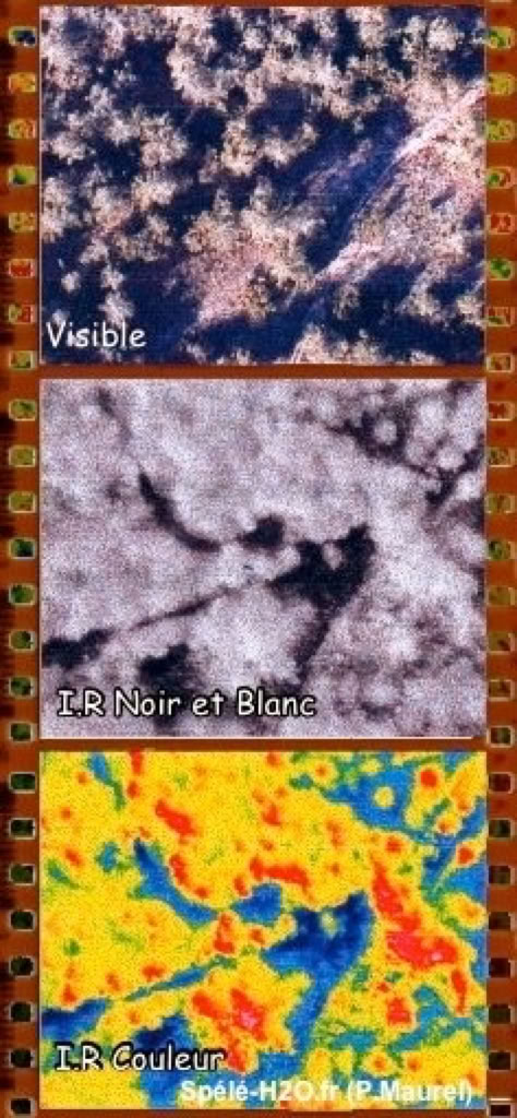 Bien avant la démocratisation des appareils de photo numériques, la caméra infra rouge n’utilisait pas de support argentique, un balayage électronique étant fait dans une longueur d’onde bien précise, adaptée aux différences de température à mettre en évidence. La technique n’est pas simple, nécessite un matériel complexe et coûteux. Les crédits nécessaires à une telle opération amenèrent de nombreuses démarches.La circulation des flux d’air, leur température sont des éléments primordiaux à prendre en compte dans le cadre des recherches de cavités sur un karst.
