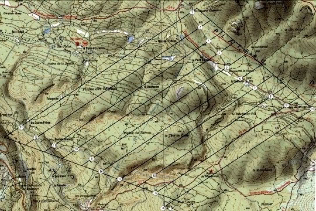 Quadrillage pour le survol infrarouge du réseau de la Tête du Cade (clique sur la carte pour l’agrandir)