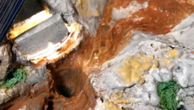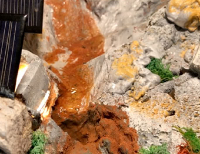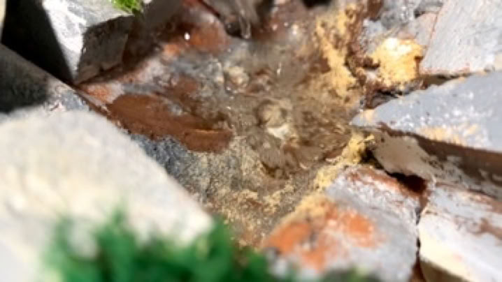 Scènes 12, 13 et 14 : l'eau de pluie ruisselle, puis s'infiltre dans les fissures de la roche calcaire.