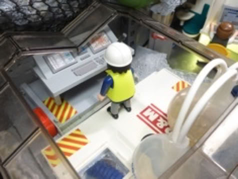 Scènes 36 à 41 : usine de traitement des eaux. Transformation de l'eau brute en eau potable destinée à la consommation humaine.