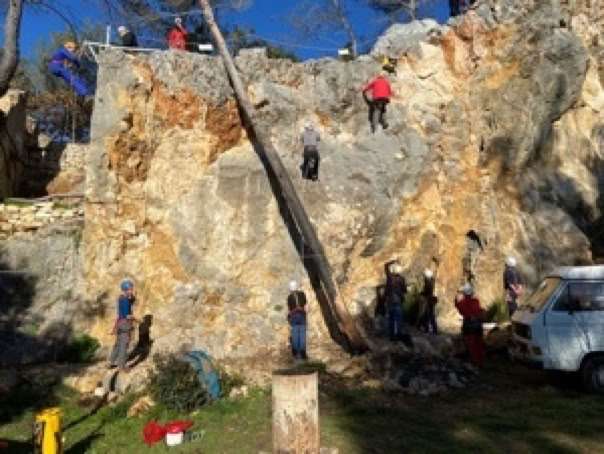 - Équipement d’un atelier de progression verticale pour initier aux techniques de spéléologie sur corde.