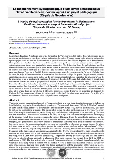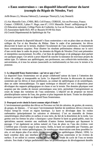 - Article paru dans la revue Spelunca, 145, mars 2017 : "Eaux Souterraines" un dispositif éducatif autour du karst - exemple du Régaïe de Néoules, Var.