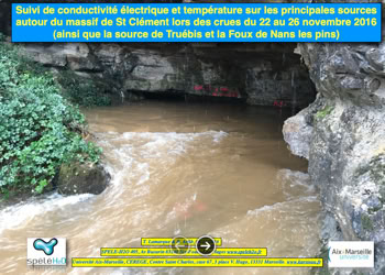 - Le suivi des sources autour du massif Saint Clément (Var) lors de la crue du 22 novembre 2016 (conductivité électrique, température) : Télécharger