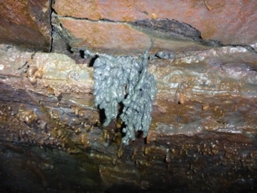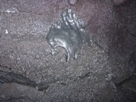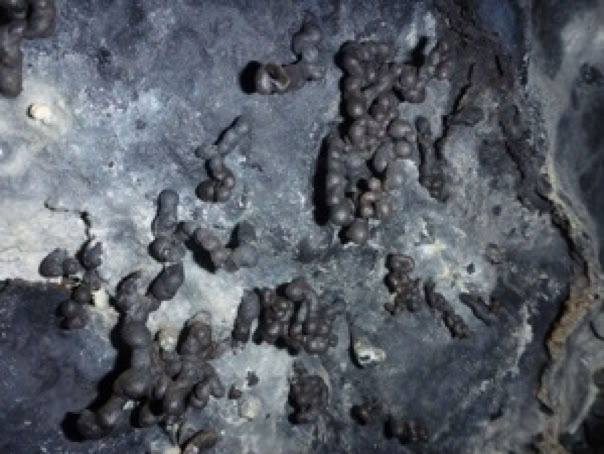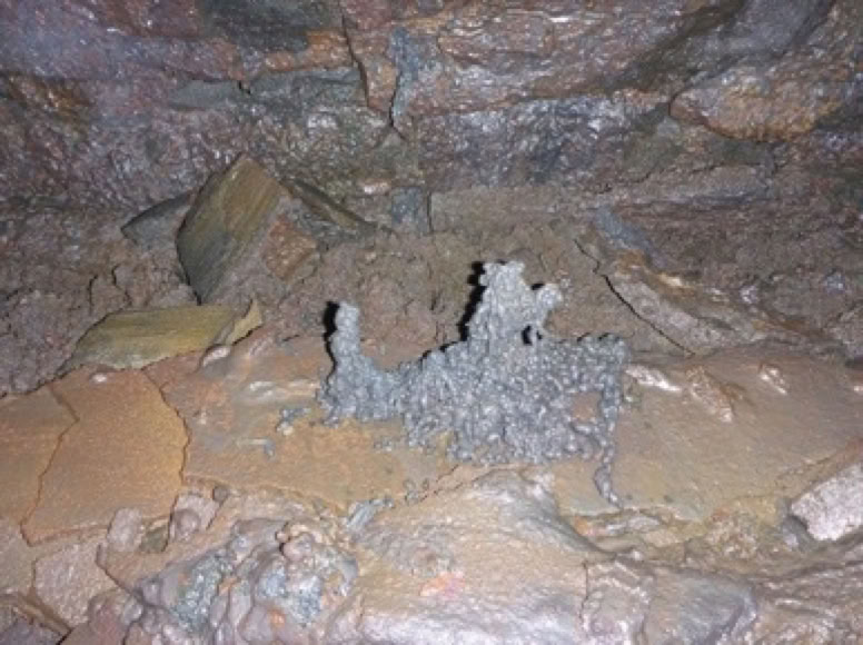 Quelques spéléothèmes, notamment une salle tapissée de stalactite basaltique