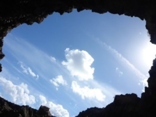 Ci-dessous la seconde Lucarne du tube à lave basaltique de la cueva de los Naturalistas