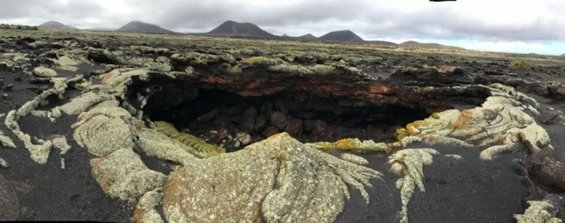 Les coulées de lave s’écoulent du volcan, suivant le relief qui leur convient le mieux, souvent formant une rivière de lave bien canalisée. En surface, la lave se refroidit au contact de l’air, créant une croûte solide, parfois tubulaire, tandis que la lave en fusion continue de s’écouler à l’intérieur. Lorsque l’éruption s’arrête, la lave fluide se retire, formant un réseau de galeries souterraines appelées tunnels de lave. Ces tunnels deviennent accessibles une fois les parois refroidies, surtout si une lucarne se forme lors de l’effondrement du toit du conduit. Ils peuvent s’étendre sur des dizaines de kilomètres et sont abondants à Hawaii, aux îles Canaries, à La Réunion, aux Açores et en Islande. Nous avons eu la chance de les visiter en Islande et sur l’île de Lanzarote.